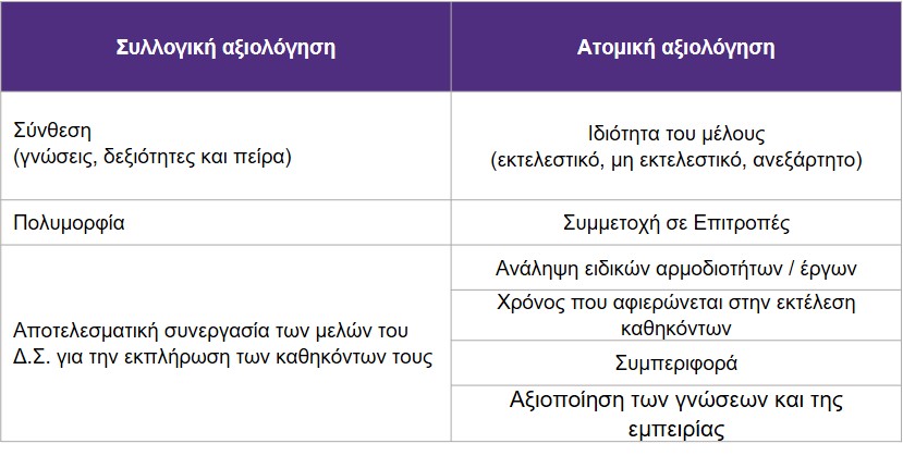 - Το Διοικητικό Συμβούλιο αξιολογεί ετησίως την αποτελεσματικότητά του, την εκπλήρωση των καθηκόντων του, καθώς και των Επιτροπών του.