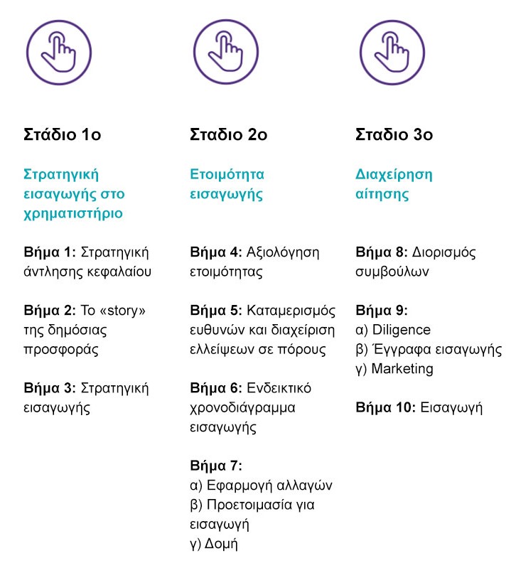 Η Εναλλακτική Αγορά (ΕΝΑ) του Χρηματιστηρίου Αθηνών παρέχει ένα απλοποιημένο κανονιστικό πλαίσιο σε σχέση με την κύρια αγορά, ωστόσο και στις δύο περιπτώσεις απαιτείται εκτενής σχεδιασμός για μια επιτυχημένη διαδικασία εισαγωγής. Η ολοκλήρωση μιας επιτυχημένης εισαγωγής και η μετατροπή μιας ιδιωτικής επιχείρησης σε εισηγμένη στο χρηματιστήριο πιθανότατα θα απαιτεί αλλαγές στην εταιρική διακυβέρνηση, τις διαδικασίες και την κουλτούρα της εταιρείας.
